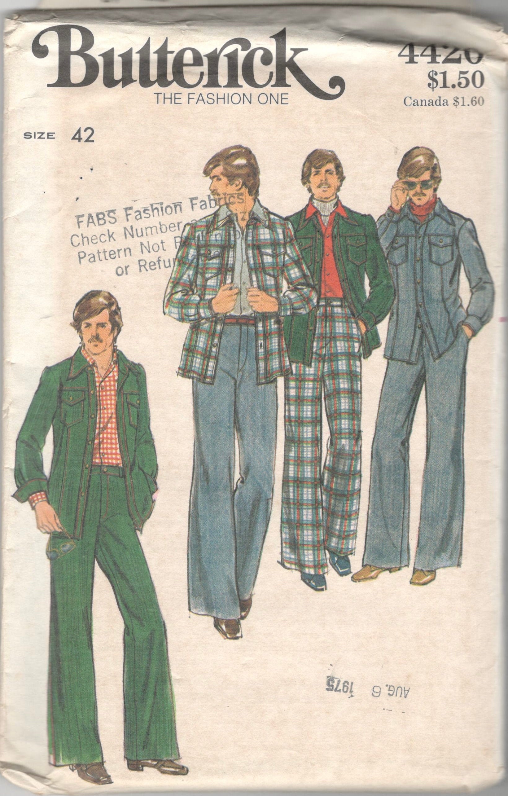 1970s Butterick 4420 Mens Shirt Jacket And Pants Pattern Etsy
